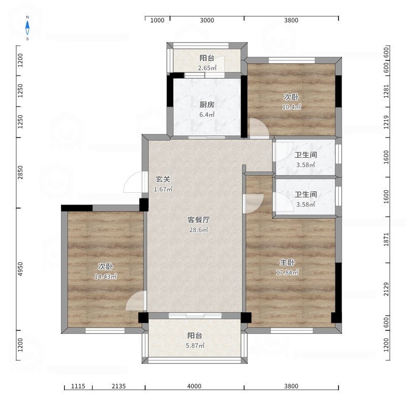 • 房屋户型3室2厅2卫