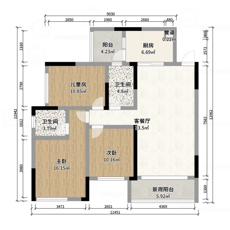 • 房屋户型3室2厅2卫